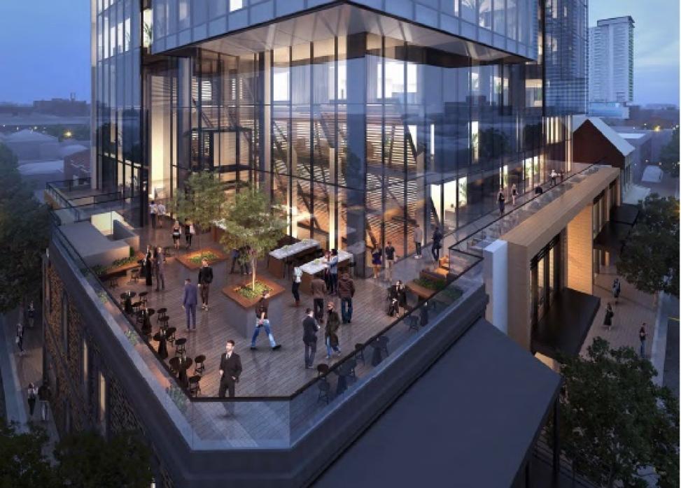 Retail tenancy at Ground floor with fifteen levels of offices and two, two storey penthouses occupying the top level.